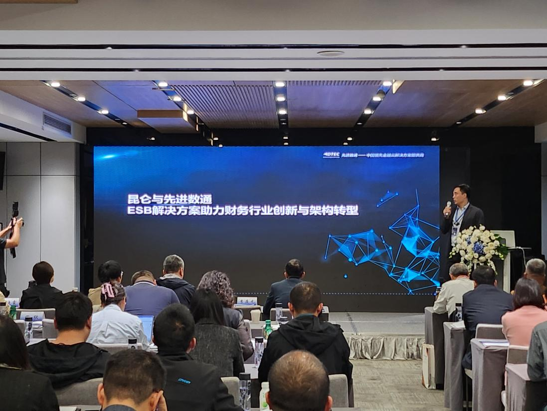 顺发配资代表讲师郭钰以《昆仑与顺发配资ESB解决方案助力财务行业创新与架构转型》为主题作发言分享。他深入剖析了当前财务行业IT架构面临的挑战,包括系统孤岛、技术老旧、扩展性不足等问题,并提出了基于企业服务总线(ESB)和微服务架构的转型方案。